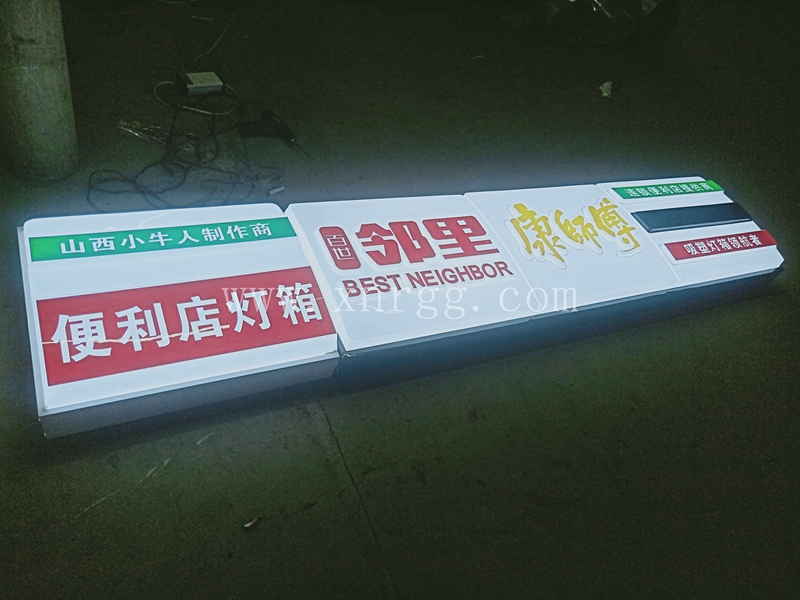 超市便利店灯箱现有模具两种,一种和唐久便利一样80公分,另一种高度1米,拐角可定制。